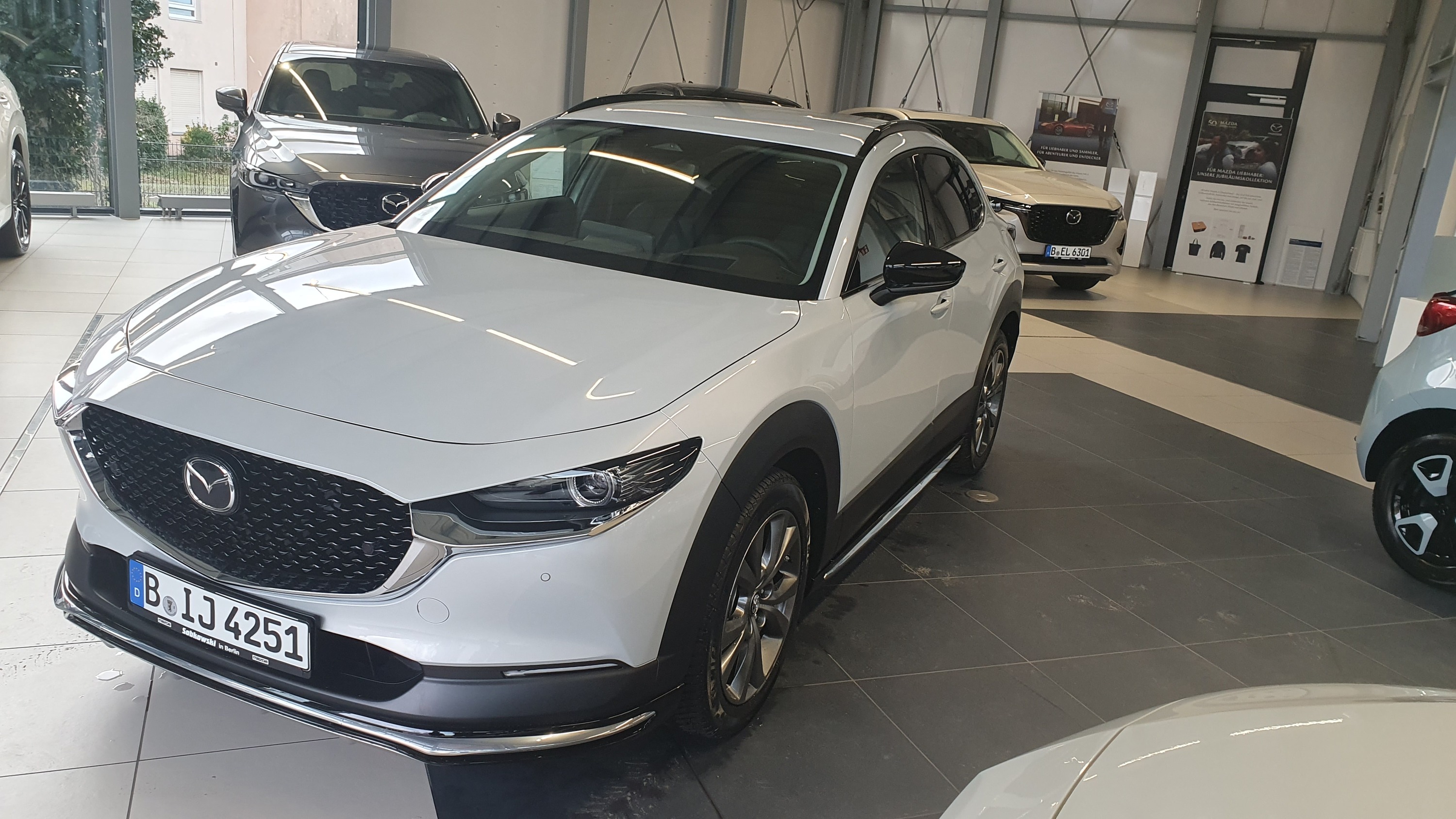 Mit Heck- und Frontschürze, sowie Seitenschwellern. Auch die Dachreling fand ich super. Außenspiegel in schwarz passt gut zum Wagen. 186 PS und Lederausstattung.
